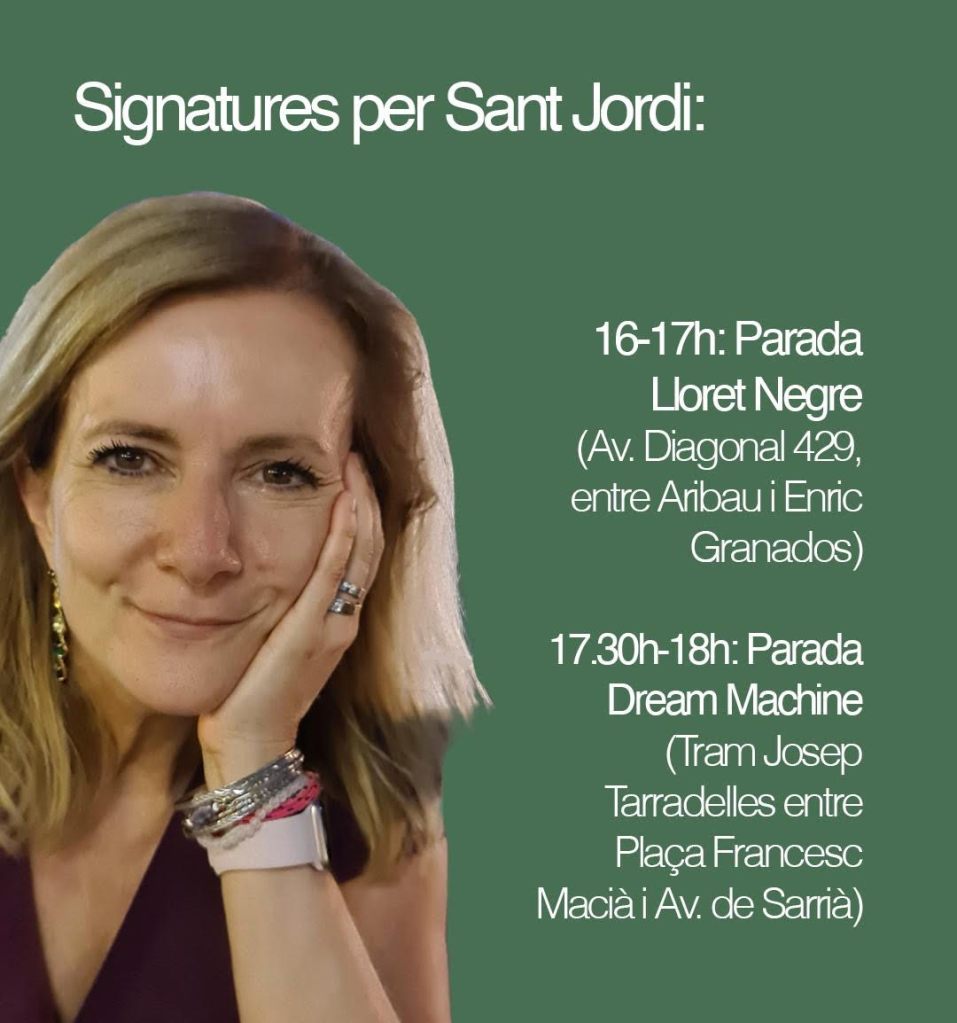 El proper 23 d’abril dia de Sant Jordi signaré la novel·la Cosas que no quise contarme a Barcelona. Estaré a la parada de Lloret Negre a la Diagonal entre Aribau i Enric Granados des de les 16h a les 17h i a la parada de Dream Machine a Josep Tarradelles entre Plaça Francesc Macià i Av. Sarrià des de les 17:30h a les 18:00h. Els que vingueu us podreu portar un punt de llibre en format targetó amb la portada del llibre. Us espero!